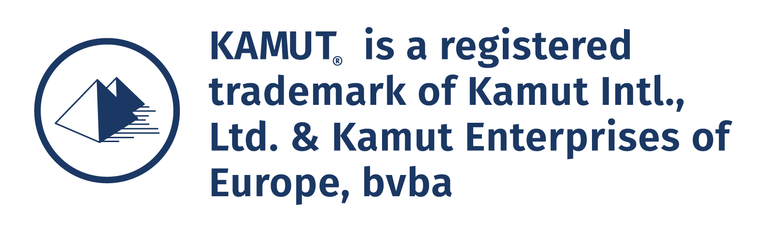 KAMUT® khorasan wheat is an ancient wheat, guaranteed under the KAMUT® brand to always be grown on certified organic farms and never be hybridized or genetically modified. Grown primarily in North America, mainly in Montana, Alberta, and Saskatchewan, as these regions produce the best quality and consistently, Khorasan wheat is prized for its nutrition, ease of digestibility, sweet nutty-buttery taste and firm texture. Most likely originating in Mesopotamia, legends exist of this grain being found in Egyptian tombs. However, there is no archeological evidence to substantiate this. Farmers in Turkey call the grain “Camel’s Tooth” because of its shape or the “Prophet’s Wheat”, referring to another legend that Noah brought the grain with him on the ark.
